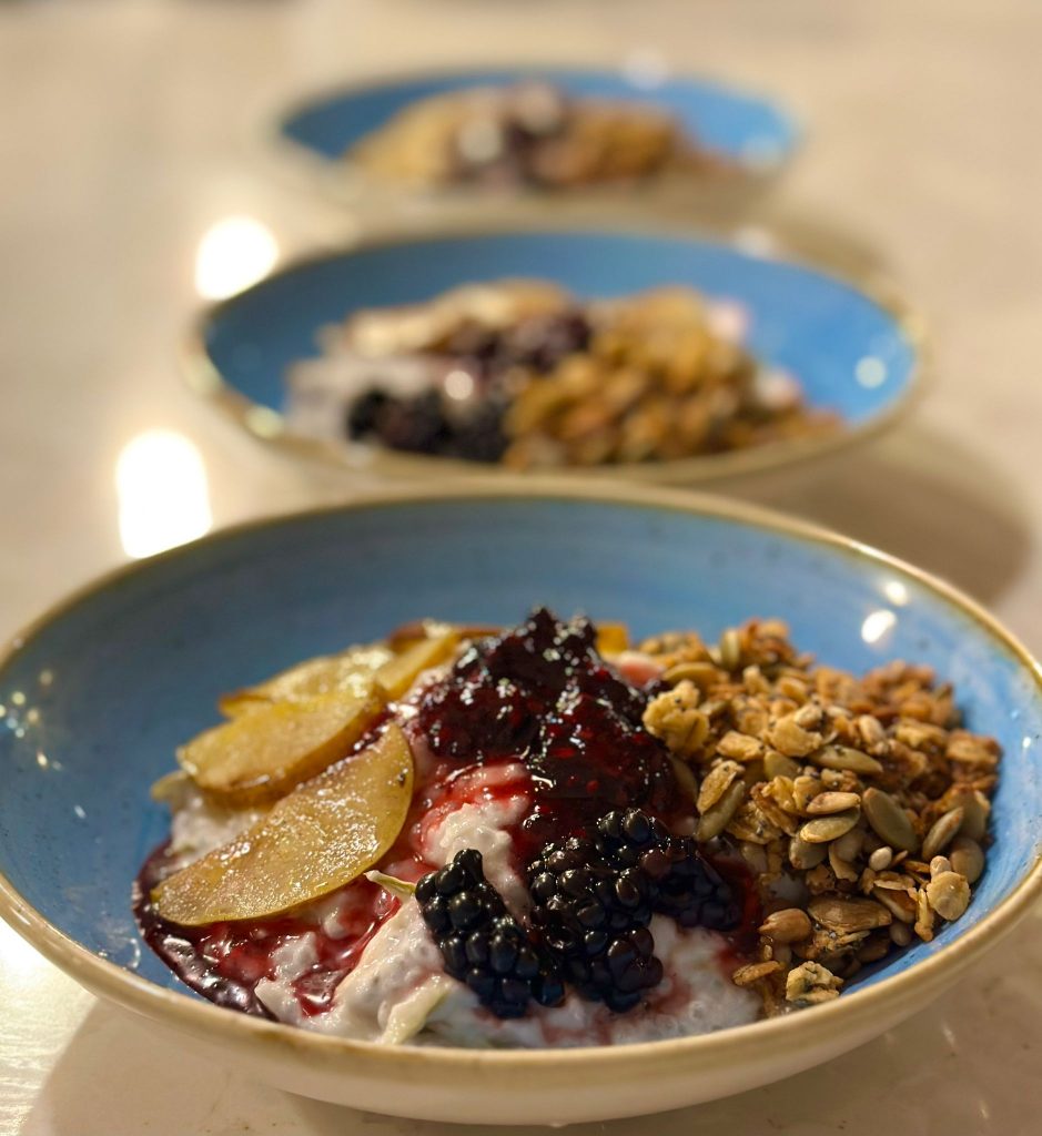 - Main Courses: Gnocchi with hake, granola, and cherry tomato sauce and a plant based Lentil patty with roast potato, celeriac fondant, and mushroom gravy.